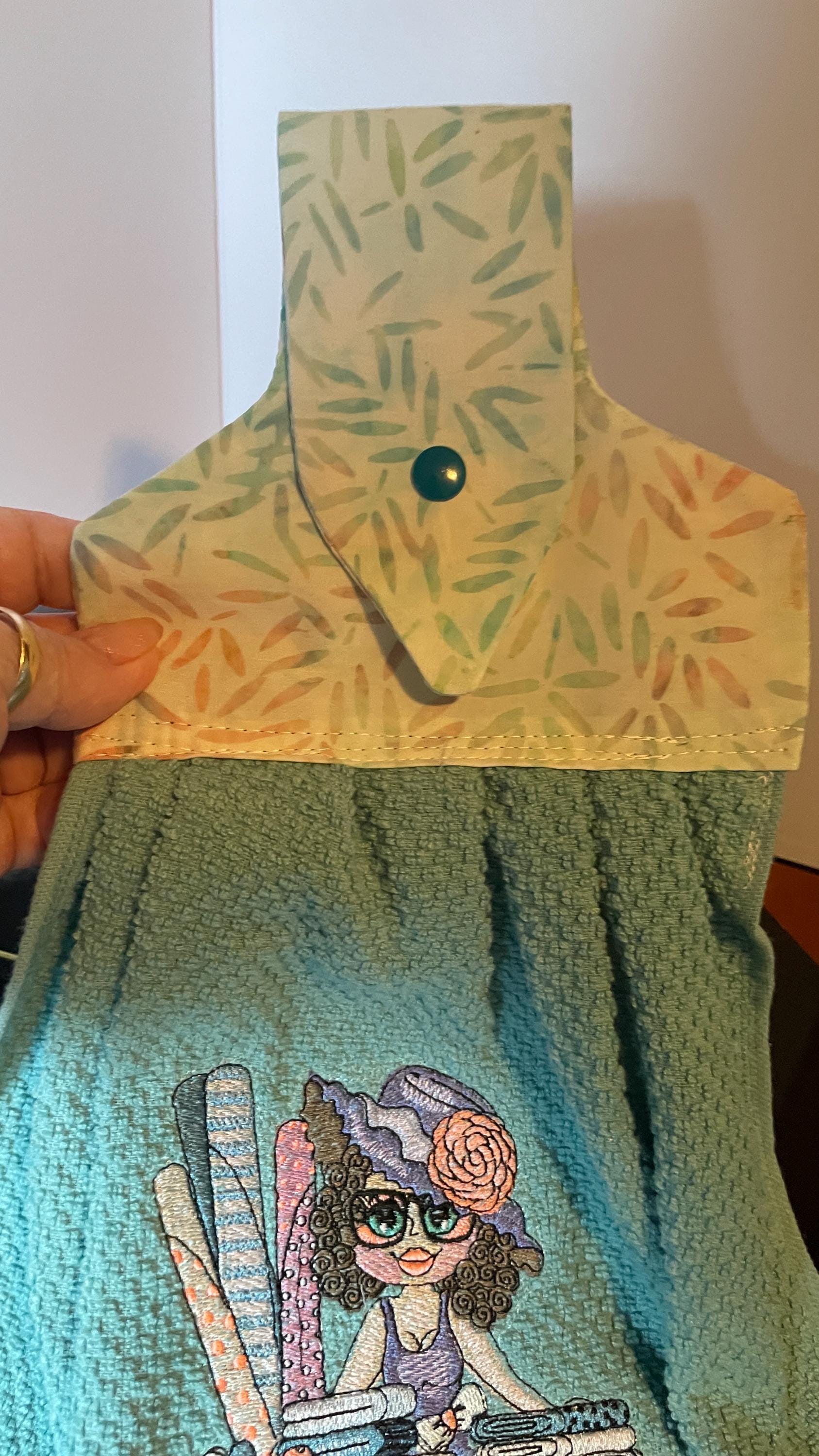 Never Drop Your Towel Again !! Hanging Tea Towel with lined cotton header and Kap Snap. Washable, reusable and a great way to brighten your kitchen. Stop buying paper towels! A nice gift for busy Moms, your favorite baker and elderly loved ones.