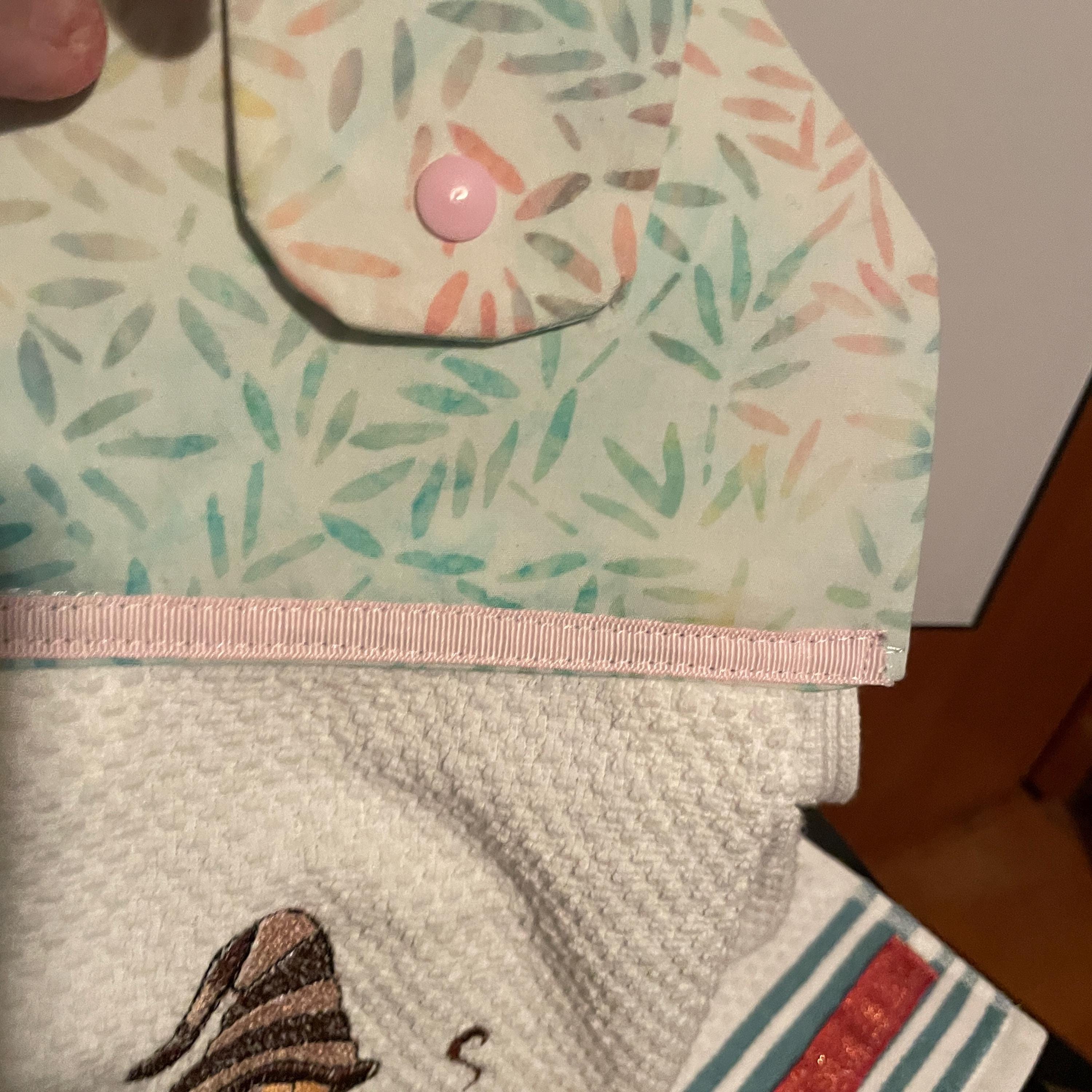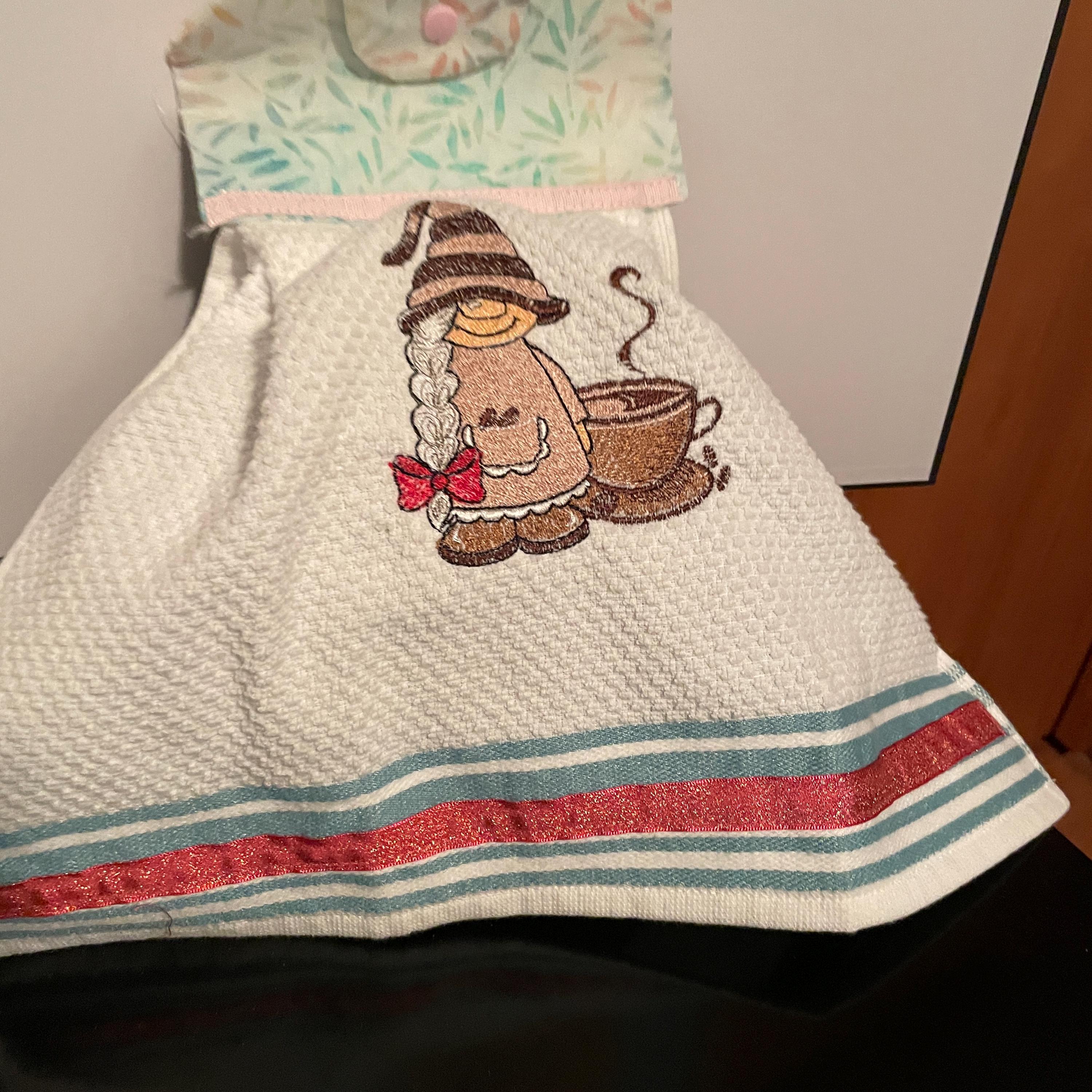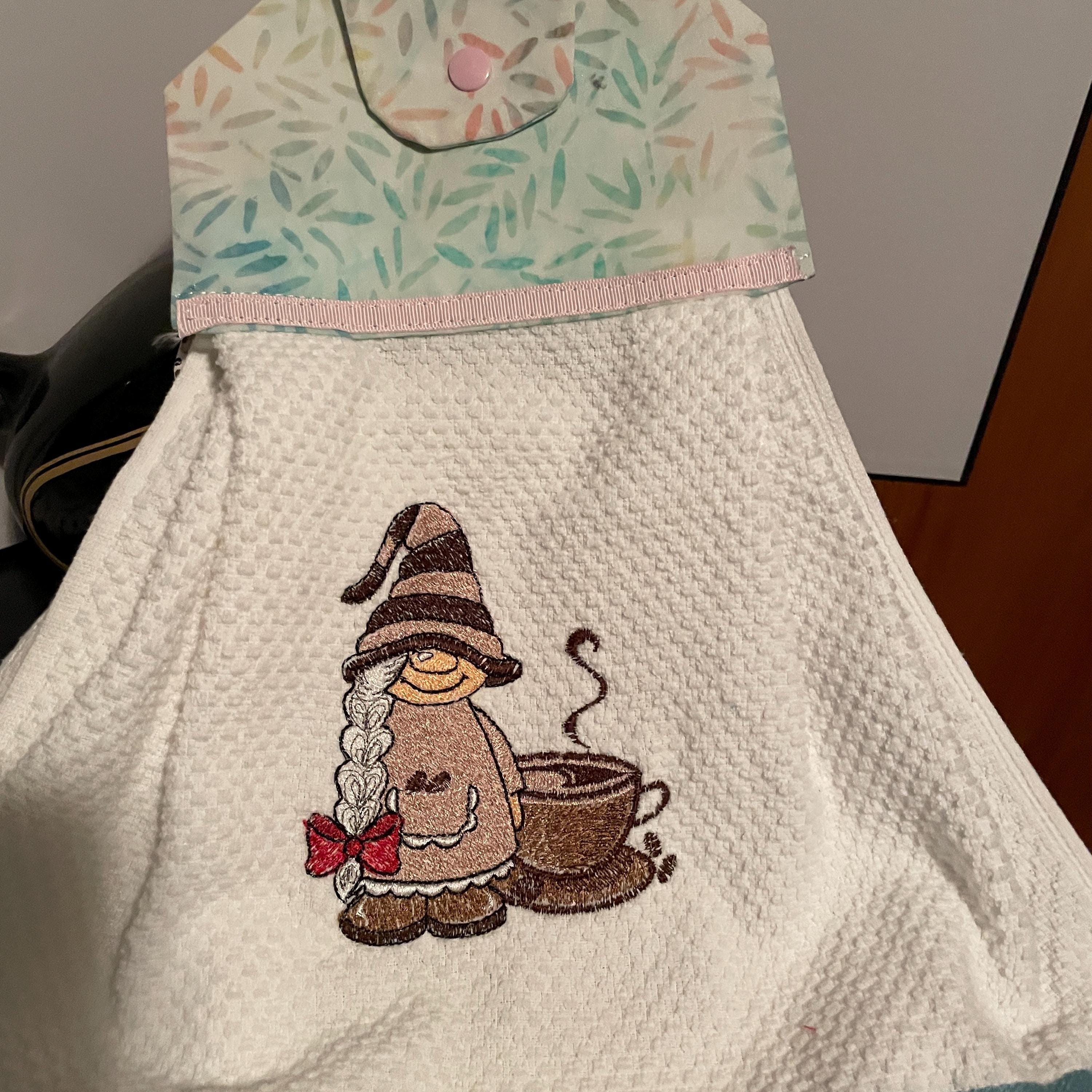 Coffee time is relaxing time with friends, family, coworkers. White cotton towel to hang from dishwasher door, oven door, drawer handle, snap closure, machine washable and dryable, great gift for house warming, bridal shower, birthday, holidays Accent with decorative ribbon